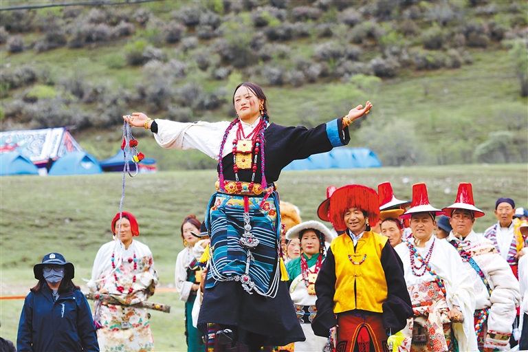 開幕式結(jié)束后,“春踏林周·悅賞杜鵑”——2024林周縣“春賞杜鵑”生態(tài)藝術(shù)共享季系列活動(dòng)開始。為了給廣大游客提供專業(yè)的旅拍服務(wù),主會(huì)場(chǎng)的杜鵑花賞花點(diǎn)被巧妙地轉(zhuǎn)化為一個(gè)充滿自然韻味的“攝影棚”,并推出“非遺”服飾體驗(yàn),讓游客更深入地感受和體驗(yàn)當(dāng)?shù)貍鹘y(tǒng)文化的魅力。同時(shí),圍繞林周縣北部的生態(tài)環(huán)境、藝術(shù)人文和“非遺”文化等設(shè)計(jì)開展了徒步旅游活動(dòng),活動(dòng)融合“農(nóng)文旅體”等內(nèi)容,從專業(yè)性的內(nèi)容植入、技能型的活動(dòng)設(shè)計(jì)等方面來增強(qiáng)徒步旅游的品質(zhì)。旁多鄉(xiāng)的達(dá)龍藏戲、唐古鄉(xiāng)的熱振曲卓、阿朗鄉(xiāng)的“果諧”還給觀眾帶來了精彩的“非遺”表演。