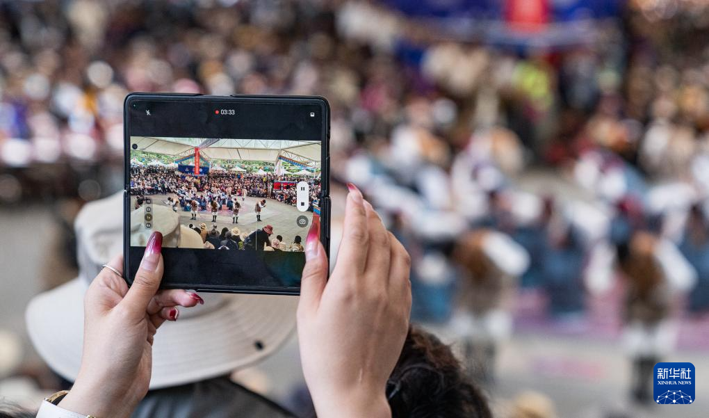 當(dāng)日,第二屆拉薩鍋莊舞大賽(決賽)在布達拉宮腳下的宗角祿康公園舉辦。經(jīng)過激烈角逐脫穎而出的12支隊伍為市民和游客奉獻了一場歡快的視聽盛宴。新華社記者 黃智琪 攝