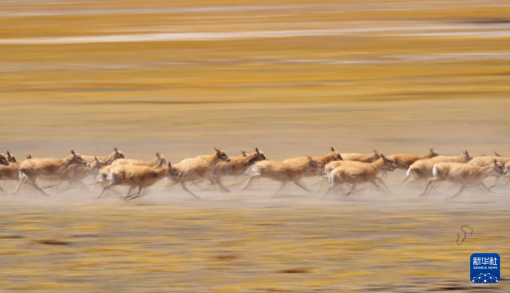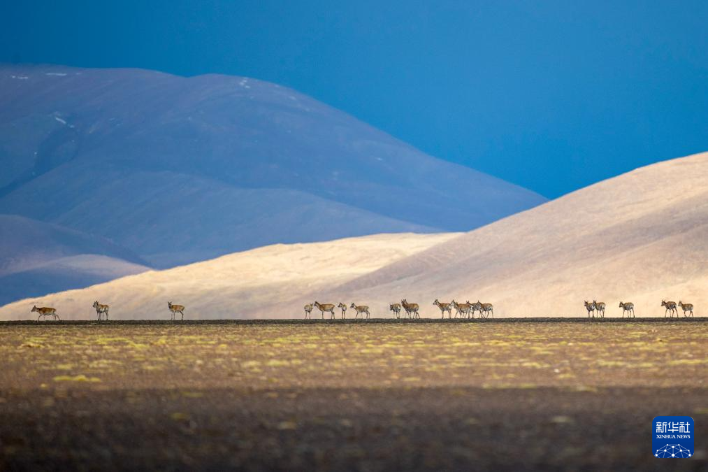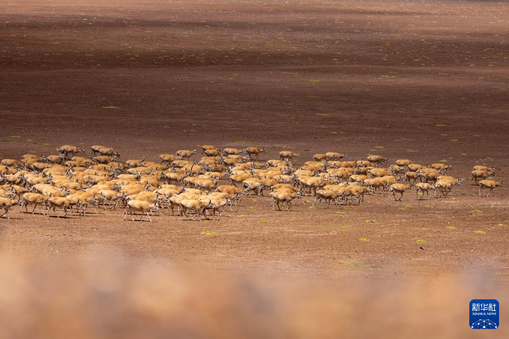 遷徙途中的藏羚羊(6月14日攝)。新華社記者 旦增尼瑪曲珠 攝