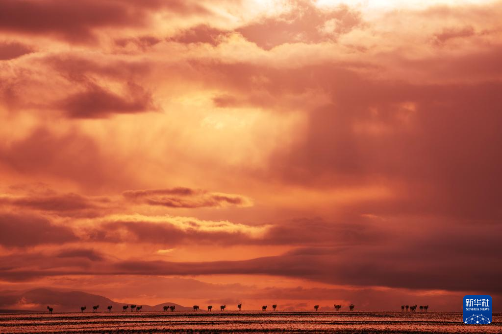 6月13日傍晚在羌塘國(guó)家級(jí)自然保護(hù)區(qū)拍攝的遷徙中的藏羚羊。新華社記者 費(fèi)茂華 攝