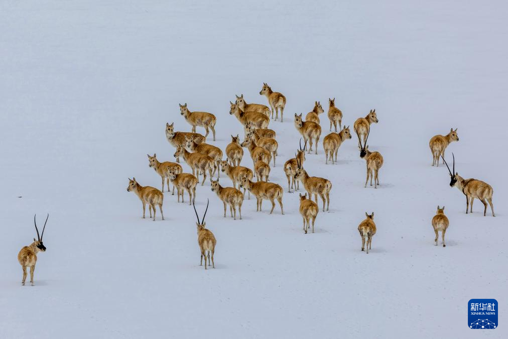 這是雪地中遷徙的藏羚羊(5月8日攝)。新華社記者 丁增尼達(dá) 攝