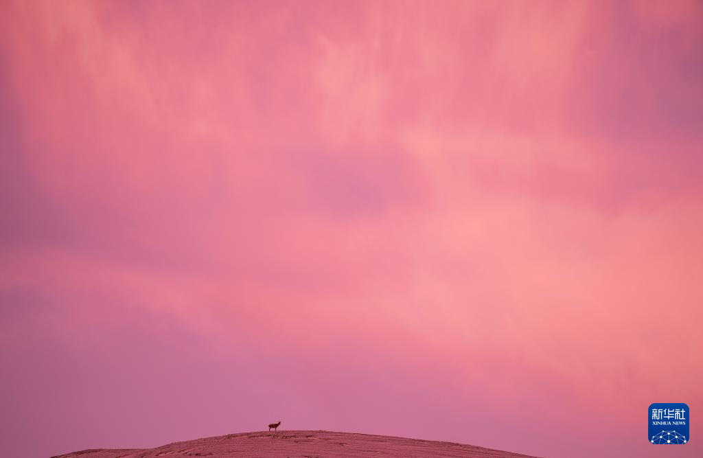 6月15日清晨雪后,在羌塘國(guó)家級(jí)自然保護(hù)區(qū),一只母藏羚羊站在山頂瞭望。新華社記者 費(fèi)茂華 攝