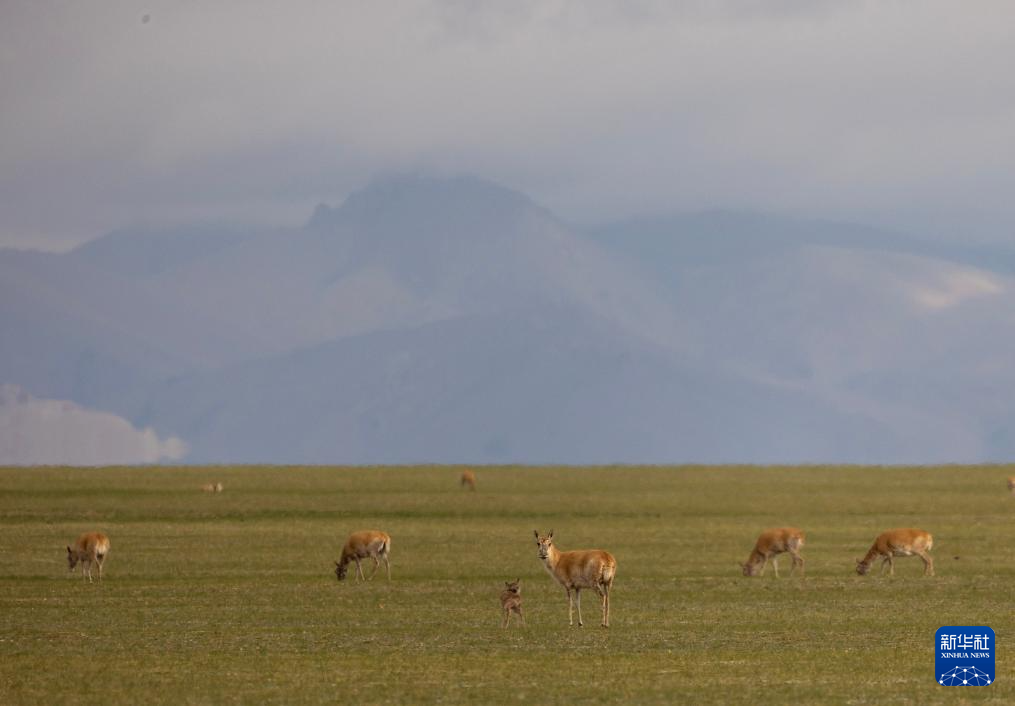 這是在那曲市申扎縣拍攝的藏羚羊群(6月9日攝)。新華社記者 旦增尼瑪曲珠 攝