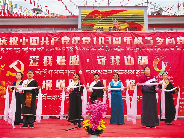 日喀則市聶拉木縣塔杰林村開展慶祝中國共產(chǎn)黨成立103周年暨“七一”主題黨日活動(dòng)?;顒?dòng)期間,農(nóng)牧民黨員穿上紅馬甲、拿起編織袋,在村莊干道、村委會(huì)周邊,認(rèn)真開展垃圾清理“黨員志愿服務(wù)”活動(dòng)。隨后,黨員們身著節(jié)日盛裝,齊聚在村委會(huì)廣場,開展“升國旗、唱國歌”儀式,重溫入黨誓詞。自治區(qū)政協(xié)辦公廳駐塔杰林村工作隊(duì)還圍繞“開展黨紀(jì)學(xué)習(xí)教育、推進(jìn)鄉(xiāng)村振興”主題,舉辦了專題黨課。