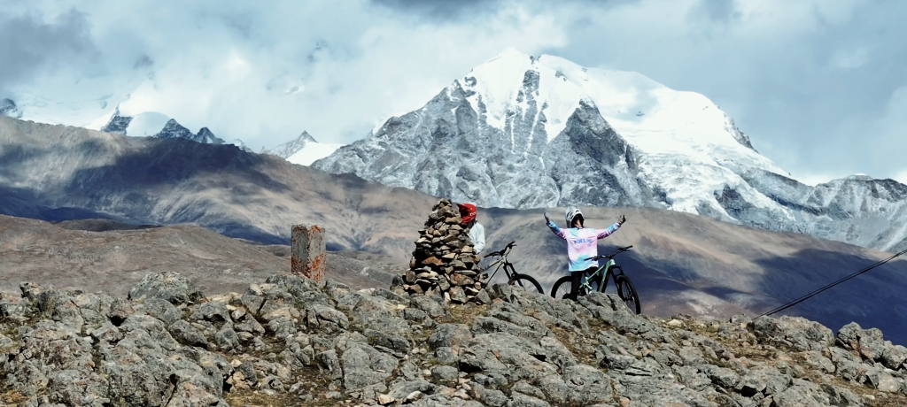 旦增吉美戴上頭盔準(zhǔn)備騎車速降