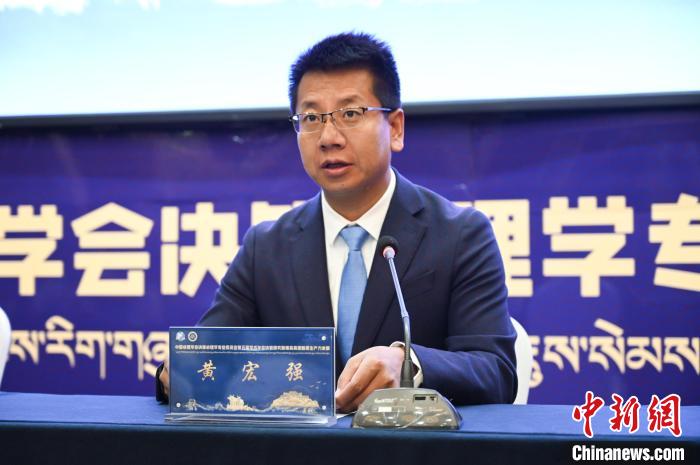 圖為西藏大學(xué)教育學(xué)院書記黃宏強致辭。趙朗 攝