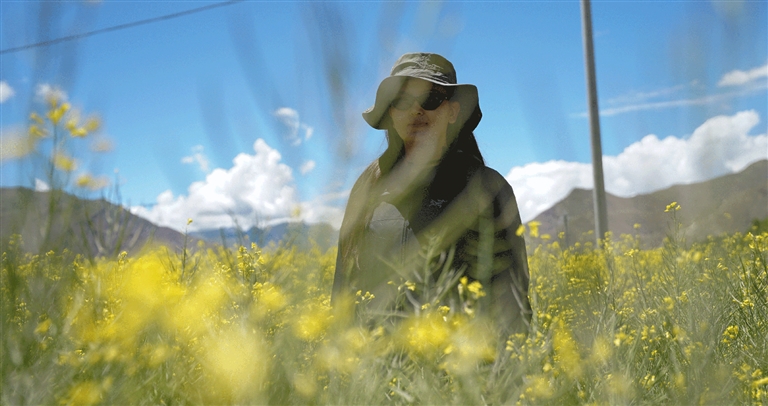 7月初,記者一行驅(qū)車從拉薩出發(fā),在開往錯(cuò)那市的路上,經(jīng)過了瓊結(jié)縣百畝油菜花和隆子縣錯(cuò)落有致的油菜花田。烈日下,油菜花是這片大地的“主角”,是山南市每年盛夏從不缺席的芬芳。一路走來,油菜花肆意地盛開在道路兩旁、村莊里、半山腰……微風(fēng)拂過,花朵搖曳生姿綻放著,從稍遠(yuǎn)處看,俗坡奴村錯(cuò)落分布在黃綠交錯(cuò)的田野中,仿若一幅美麗清新的鄉(xiāng)村田野詩畫。此時(shí),看風(fēng)景的行人紛紛鉆進(jìn)花田中,仿佛是跟油菜花“爭芳斗艷”。