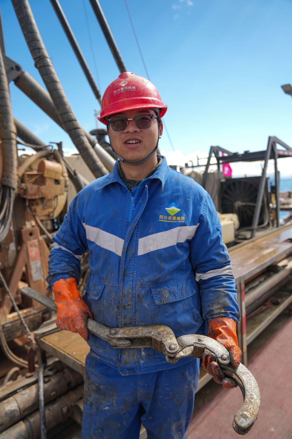 7月11日,鉆工劉文平在準(zhǔn)備拆卸鉆桿。新華社記者 晉美多吉 攝