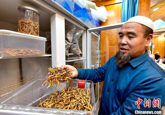 圖為7月16日,蟲草商張華平正在展示店內(nèi)的蟲草。中新社記者 李林 攝