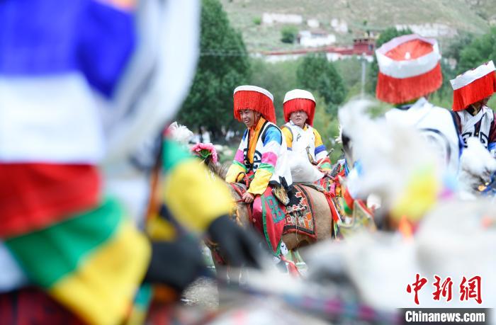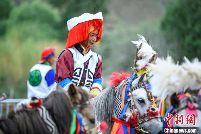 7月21日,西藏自治區(qū)拉薩市堆龍德慶區(qū)馬鎮(zhèn)朗巴村民眾賽馬歡度“望果節(jié)”?!巴?jié)”民俗已有1500多年的歷史,是國家級非物質(zhì)文化遺產(chǎn)。圖為騎手準備比賽。中新社記者 貢嘎來松 攝
