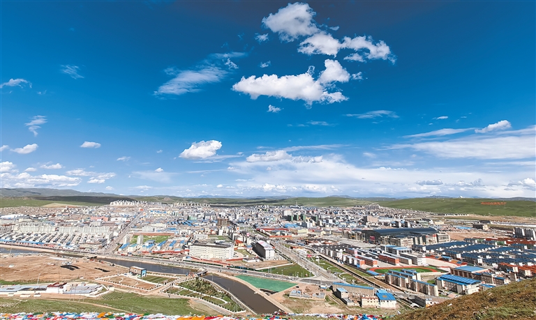 那曲市區(qū)鳥瞰圖。記者 萬靖 攝
