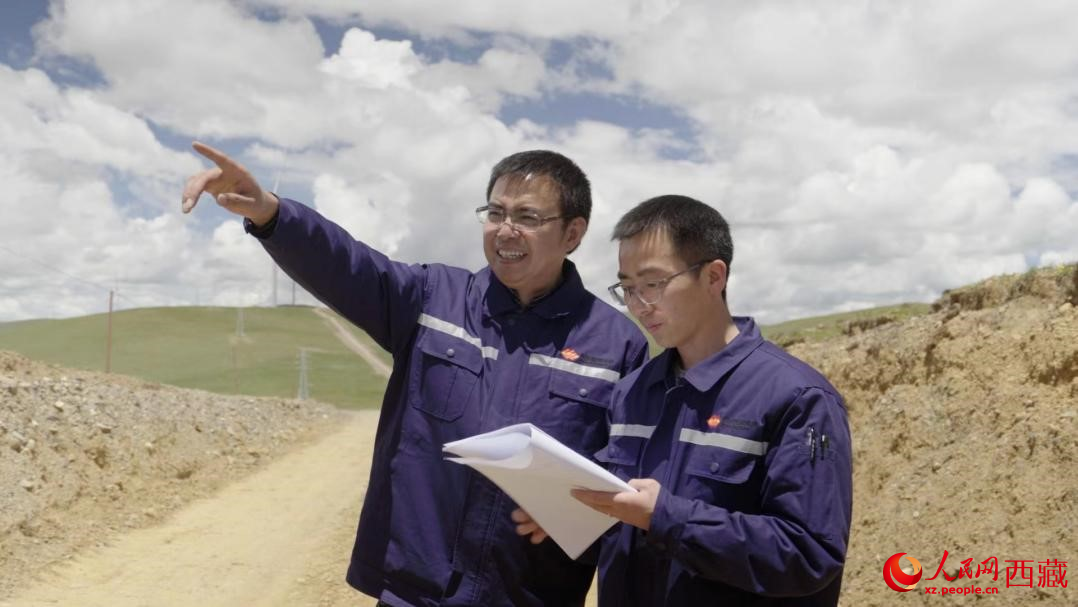 國家能源集團(tuán)西藏那曲分公司副總經(jīng)理胡建生(左一)和同事在一起工作。人民網(wǎng)記者 趙晨攝