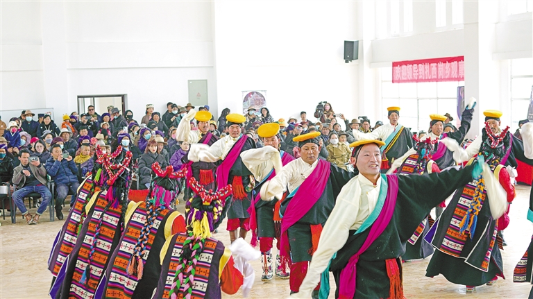 甲瑪鄉(xiāng)諧欽隊(duì)在非遺巡展活動(dòng)上表演諧欽。