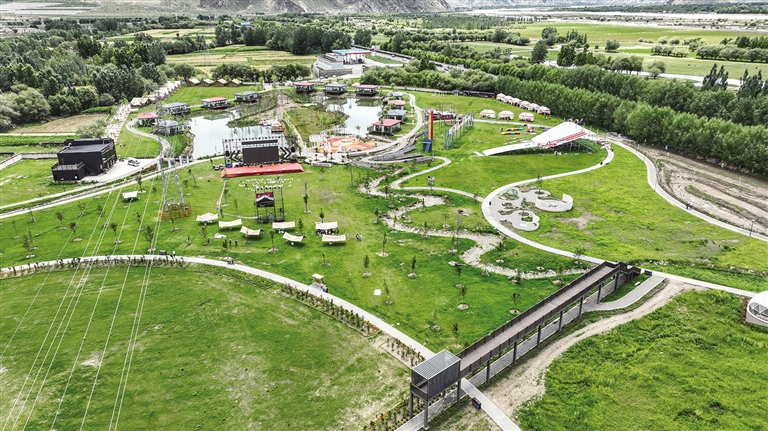 在西藏,每年夏秋時節(jié),大家喜歡帶著美食美酒,走進(jìn)大自然享受林卡時光。園區(qū)為了方便市民游客在游園的同時,實現(xiàn)過林卡的快樂,貼心設(shè)置了林卡區(qū),專用的戶外露營帳篷坐落在園區(qū)一側(cè)。當(dāng)日,不少市民游客趁著雪頓節(jié)來到這里過林卡,記者看到,帳篷里的人們邊享受美食邊載歌載舞,很是愜意。有幾名市民則躺在帳篷門口的草坪上。在這里,無論是家庭聚會還是朋友小聚,都能找到屬于自己的那份愜意與寧靜。