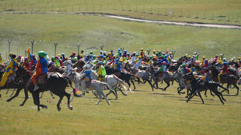 12日,10公里傳統(tǒng)大跑項目開賽,上百匹駿馬在草原上揚蹄疾奔,騎手多是十來歲的少年。15歲的普扎巴從6歲開始做騎手,曾騎著當?shù)卦S多名馬到各地參加比賽,拿過多次冠軍。“我相信這次也能拿第一名?!?0日,他在馬背上對記者說。