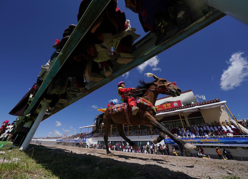 8月12日,上百匹賽馬在10公里傳統(tǒng)大跑項目中角逐。新華社記者晉美多吉攝