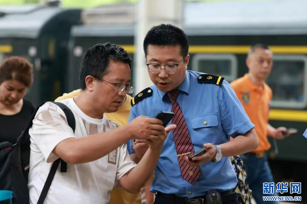 鐵路工作人員正在幫助旅客查看核對(duì)乘車信息。(中國鐵路青藏集團(tuán)公司供圖)