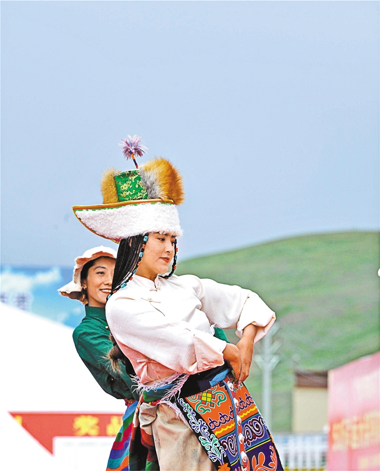 圖為班戈縣群眾在那曲市11縣區(qū)文藝調演比賽中表演舞蹈。
