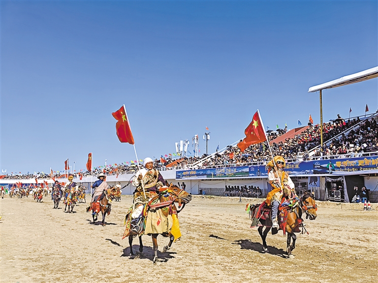 圖為那曲恰青賽馬節(jié)暨第三屆“鄉(xiāng)村振興 那曲奮進”活動開幕式場景。