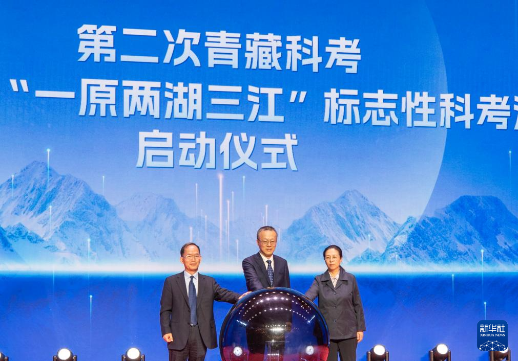 8月18日,嘉賓宣布“守護(hù)水塔:‘一原兩湖三江’重大標(biāo)志性科考活動(dòng)”啟動(dòng)。新華社記者 姜帆 攝