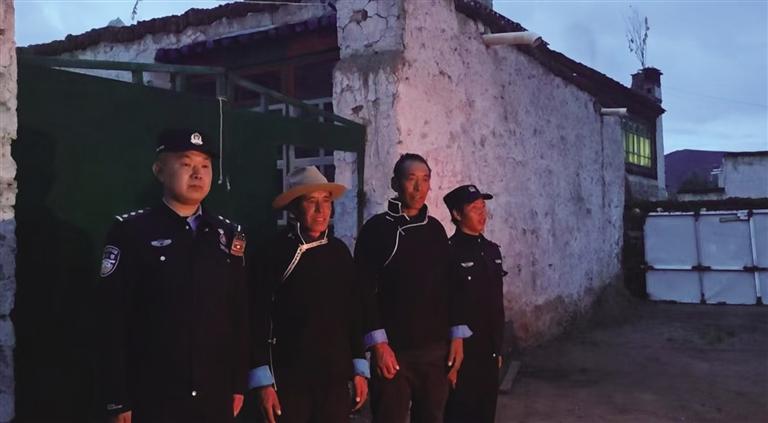 涅如麥邊境派出所教導員謝小杰(左一)、格桑(左二)、格桑的哥哥羅杰(右二)。