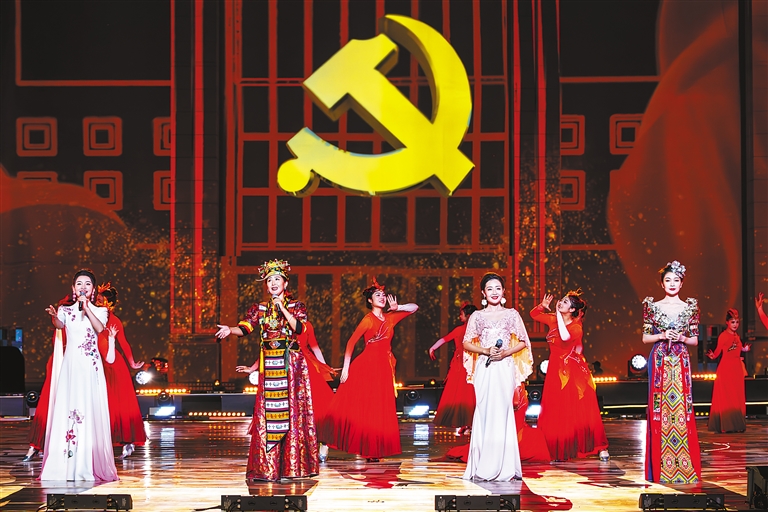 湖南、湖北、安徽三省和中糧集團對口支援山南以來,一批又一批援藏干部人才把山南當作第二故鄉(xiāng),與各族人民結(jié)下了跨越山海的深情厚誼。短片《只為你唱的歌》,展示援藏工作者背后的故事和家屬日常生活中的酸甜苦辣。情境合唱《追風趕月的人》,是一場為所有援藏工作者精心設(shè)計的特別演出,他們的家屬共同帶來了一首溫情之歌,送出了家屬們對援藏工作者的堅定支持和無盡的愛。女子群舞《格桑芙蓉并蒂開》,展現(xiàn)了湖南、山南兩地人民心手相牽的美好畫面?!俺礁杞o黨聽,我把黨來比母親……”山南市三小格?;ê铣獔F孩子們的聲音直抵人心,隨后湖南、湖北、安徽和山南的歌手們共同唱響《唱支山歌給黨聽》。