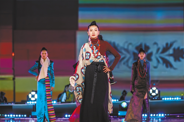 服裝秀表演《天上的羊卓雍措》在晚會中驚艷亮相。系列服飾完美融合了藏族傳統(tǒng)服飾元素與當代時尚潮流,是由湖南省援藏工作隊株洲工作組的成員們以扎囊縣氆氌為原料創(chuàng)作而成。開幕式總導(dǎo)演李詞岳說:“為了更好地展現(xiàn)舞臺效果,我們團隊克服高原反應(yīng),專門前往羊卓雍措拍攝服裝秀相關(guān)素材,希望通過這次服裝秀讓更多人了解山南、走進山南?!?/p>