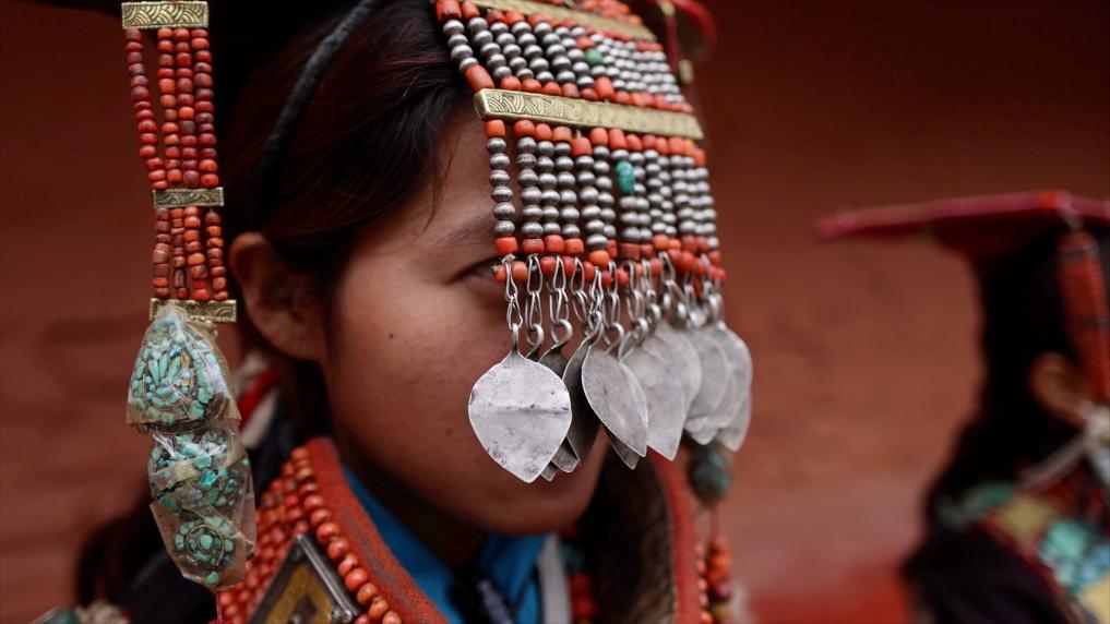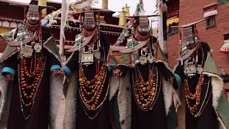 普蘭縣科迦村里有7戶人家保存著7套祖?zhèn)鞣?,一套重達25公斤,裝飾有黃金、白銀、松石、瑪瑙、珊瑚、珍珠等,承載和沉淀了百年時光,堪稱“穿在身上的千年史”。