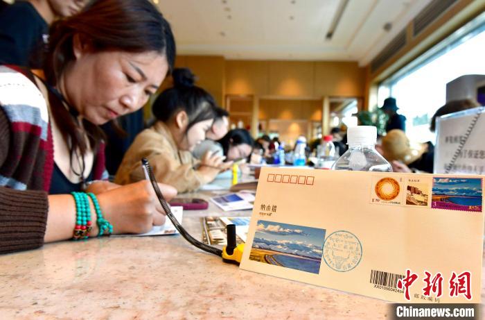 圖為游客在購買《美麗中國(四)》郵票、首日封、紀(jì)念封等產(chǎn)品后,現(xiàn)場(chǎng)填寫。李林 攝