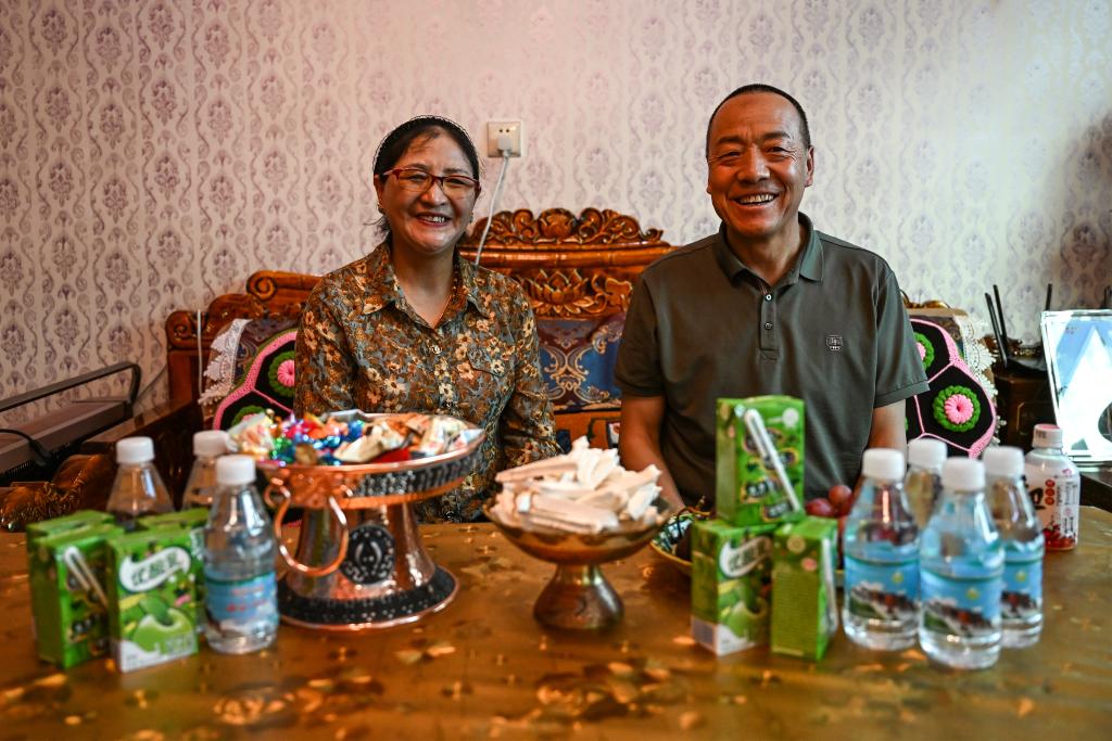 9月2日,馬尕東和妻子在家待客。新華社記者孫瑞博 攝