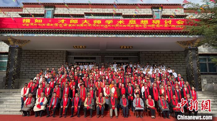 圖為參與藏醫(yī)藥學(xué)家措如·才郎大師學(xué)術(shù)思想研討會(huì)的藏醫(yī)藥專家學(xué)者合影留念。謝牧 攝