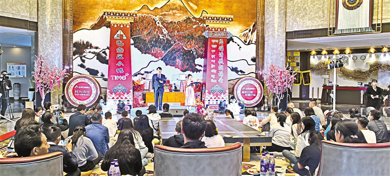 現(xiàn)場(chǎng)設(shè)置了工布藏族服飾比賽、傳統(tǒng)美食體驗(yàn)及農(nóng)特產(chǎn)品試吃、藏骰體驗(yàn)等活動(dòng)。一場(chǎng)別開生面的非遺與美食的碰撞,讓市民、游客盡享“文化大餐”。來自巴宜區(qū)四鎮(zhèn)三鄉(xiāng)的蕎麥餅、酸奶醬、藏香豬、藍(lán)莓、玫瑰茶等出現(xiàn)在傳統(tǒng)美食體驗(yàn)及農(nóng)特產(chǎn)品試吃活動(dòng)中,吸引不少市民、游客駐足品嘗,近距離享受著非遺帶來的韻味與魅力。