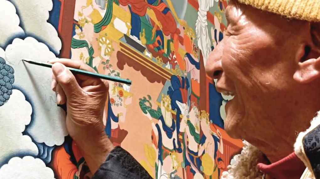 今年92歲高齡的嘎瑪?shù)吕绽先耍翘瓶ǜ卢敻鲁喈嬇傻谑鷤鞒腥?,曾被西藏自治區(qū)授予“唐卡藝術(shù)大師”等稱號。