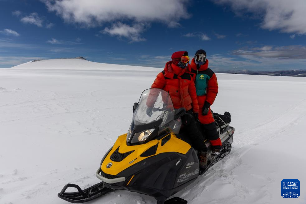 9月12日,科考隊員在雪地摩托上商量前往其他作業(yè)點的路線。新華社記者 姜帆 攝