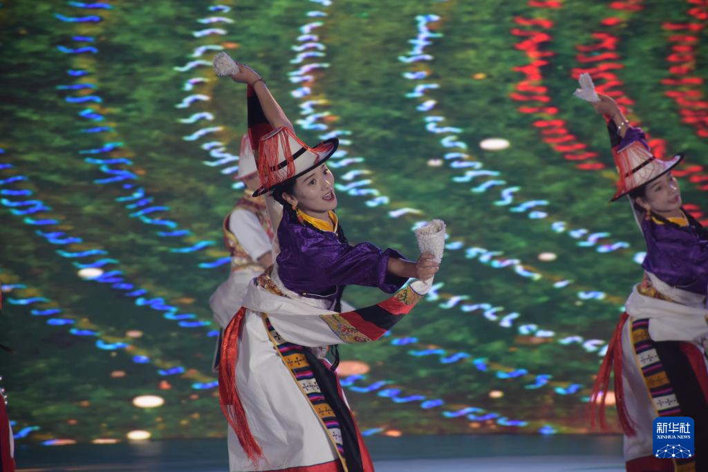 9月15日,西藏自治區(qū)那曲市比如縣娜秀文化藝術(shù)隊在比賽中。新華社發(fā)(盧丹陽攝)