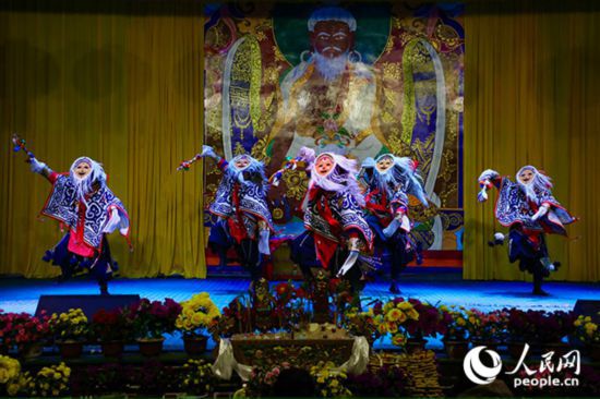扎西曲登社區(qū)藏戲表演。人民網(wǎng)記者 次仁羅布攝
