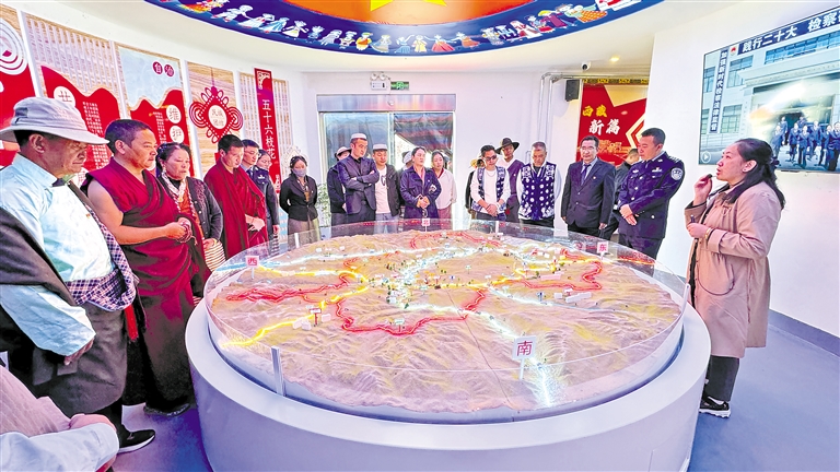9月14日,拉孜縣曲下鎮(zhèn)以鑄牢中華民族共同體意識為主線,舉辦首屆“格?;ㄩ_石榴紅·凝心鑄魂新征程”運動會暨“迎中秋、慶團結(jié)”茶話會?!D為各民族群眾代表參觀拉孜縣鑄牢中華民族共同體意識教育館。