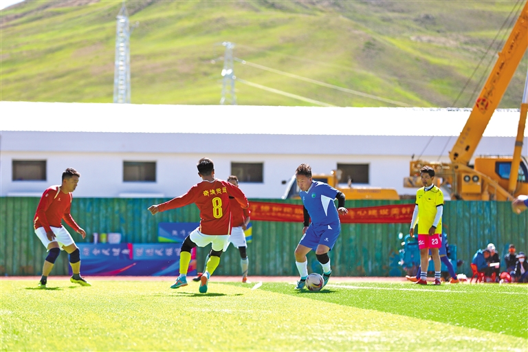 圖為吉隆縣“同心杯”干部職工足球比賽暨民族團結(jié)進步宣傳活動月啟動儀式結(jié)束后,參賽隊伍在進行比賽。