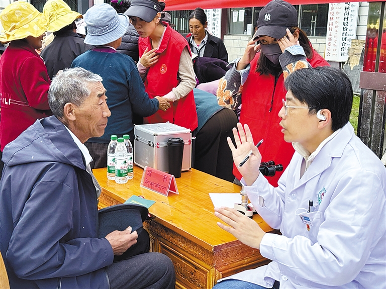 近年來,“組團式”援藏醫(yī)療人才與日喀則各族人民群眾結(jié)下了深情厚誼。 圖為上海市“組團式”援藏醫(yī)療隊在日喀則市亞東縣上亞東鄉(xiāng)開展義診活動。