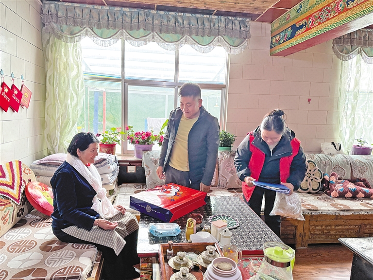 圖為亞東縣帕里鎮(zhèn)工作人員在民族團結(jié)通婚家庭開展走訪慰問。(本版圖片均由記者 扎西頓珠 楊子彥 旦增嘎瓦 攝)
