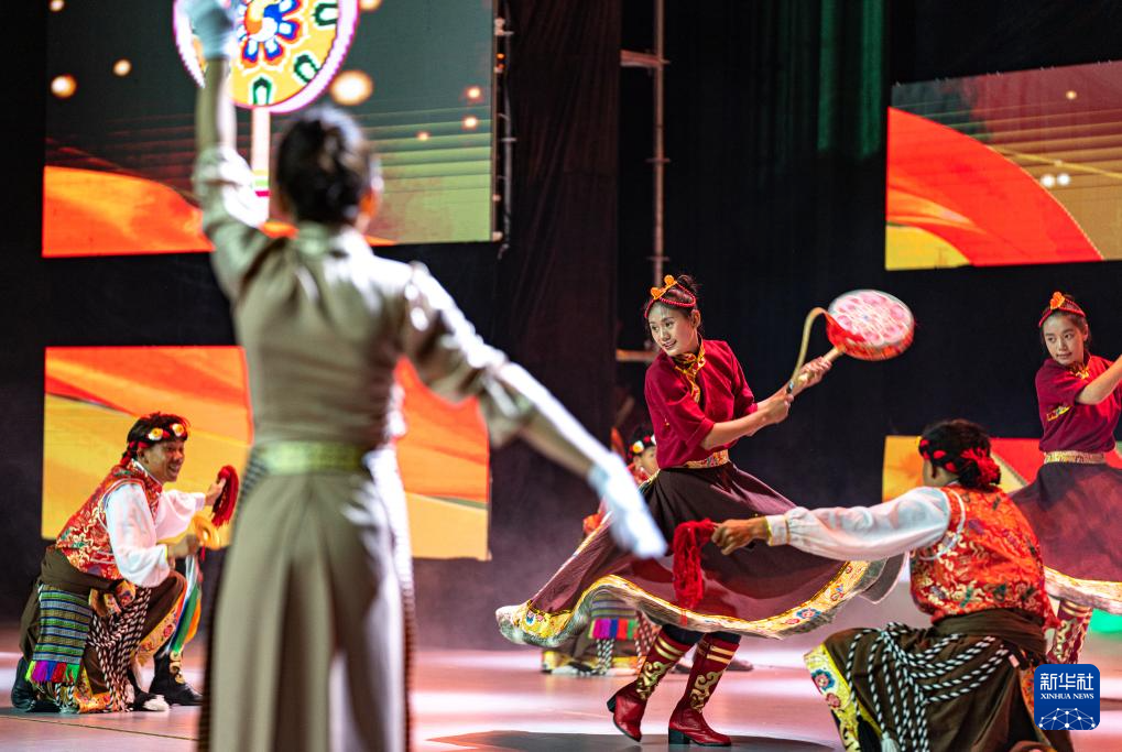 拉薩阿里河北完全中學的學生在表演節(jié)目(9月25日攝)。新華社記者 丁增尼達 攝