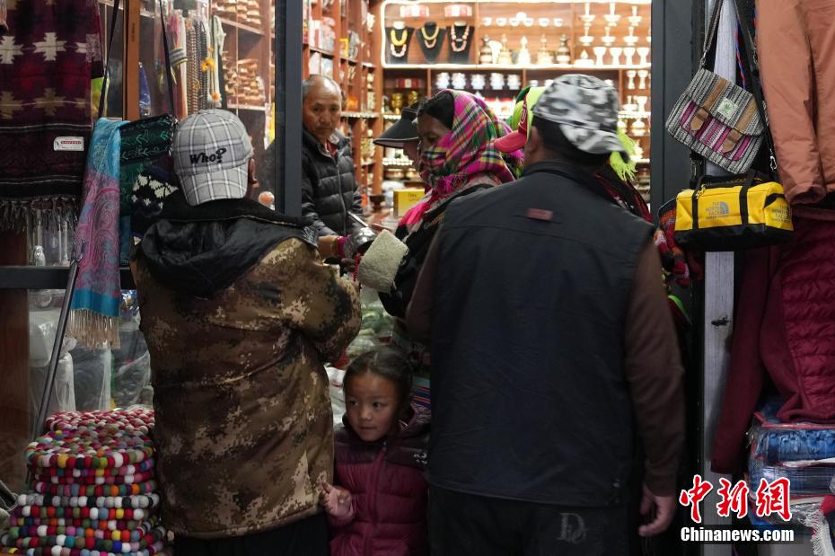 9月30日,游客在位于西藏阿里地區(qū)普蘭縣的唐噶邊貿(mào)市場選購商品。中新社記者 崔楠 攝