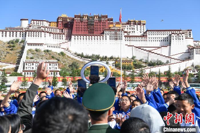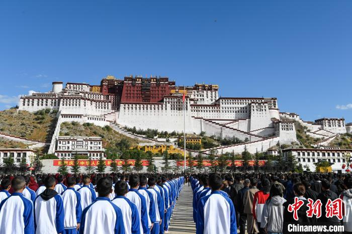 10月1日上午,西藏自治區(qū)在布達(dá)拉宮廣場(chǎng)舉行“升國(guó)旗、唱國(guó)歌”儀式,慶祝中華人民共和國(guó)成立75周年。中新社記者 貢嘎來(lái)松 攝