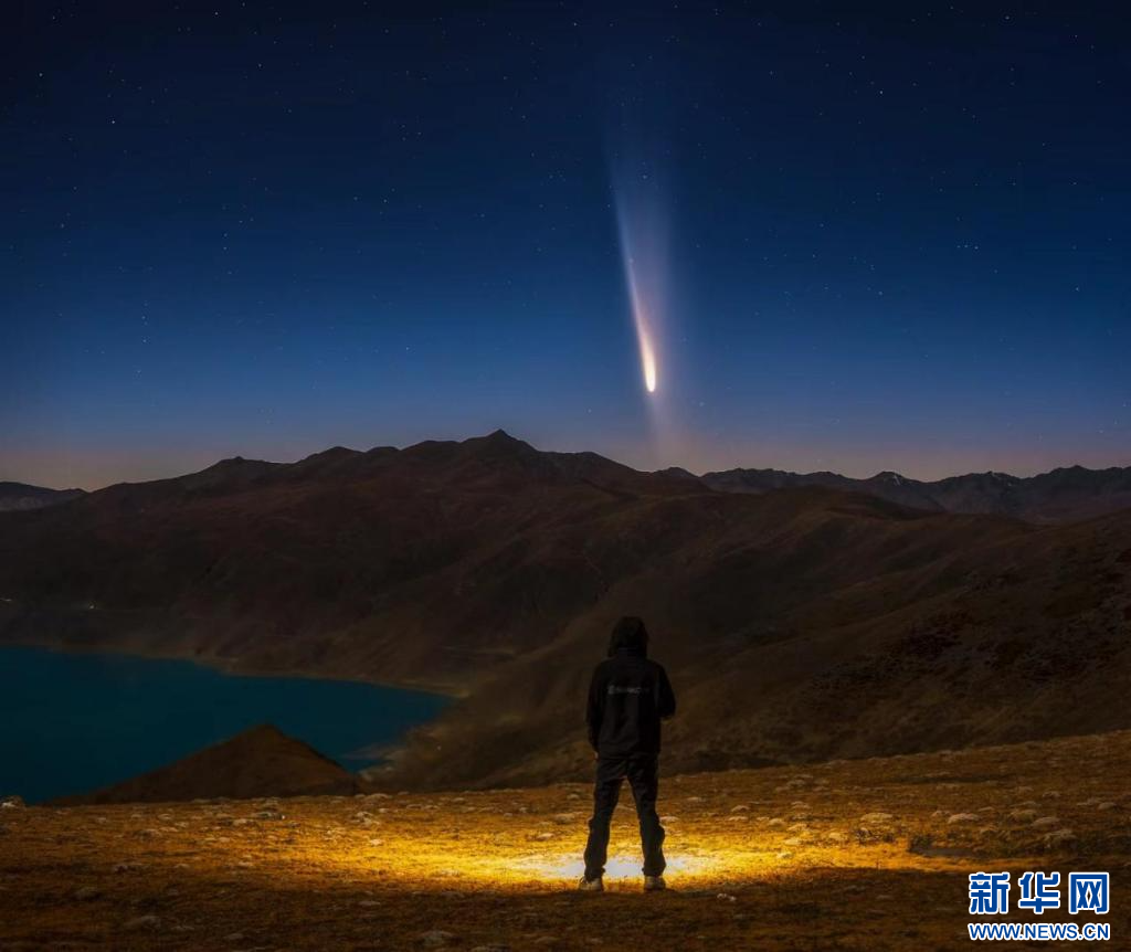 10月13日,拍攝于羊卓雍措1號觀景臺的彗星。新華網發(fā) 范禹杰 攝