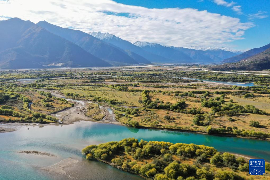 這是10月24日在西藏林芝雅尼國(guó)家濕地公園內(nèi)拍攝的尼洋河(無(wú)人機(jī)照片)。新華社記者 李賀 攝