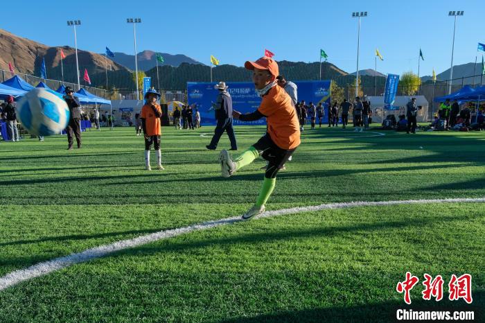 足球運(yùn)動在拉薩擁有廣泛的基礎(chǔ),圖為10月26日下午,一群孩子在2024拉薩“村超”足球聯(lián)賽現(xiàn)場練習(xí)射門。中新社記者 江飛波 攝