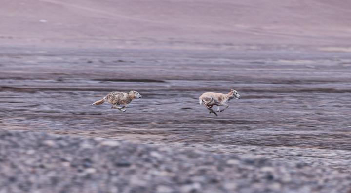 2024年6月14日,在西藏那曲市尼瑪縣境內(nèi)的羌塘國家級自然保護(hù)區(qū)“無人區(qū)”深處,一只野狼在追逐一只懷孕的母藏羚羊(視頻截圖)。新華社發(fā)(達(dá)瓦多吉攝)