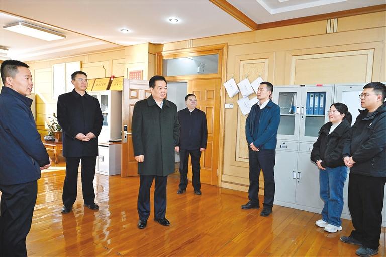 12月2日上午,自治區(qū)黨委書記王君正在自治區(qū)黨委辦公廳系統(tǒng)調(diào)研。這是王君正在自治區(qū)黨委辦公廳法規(guī)處與工作人員親切交流。 本報記者 李洲 攝