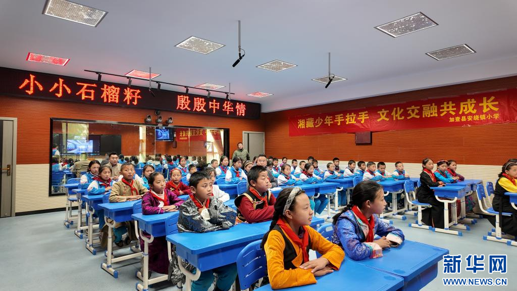走進山南安饒鎮(zhèn)小學的同心筑夢文化園,我國各民族的簡介牌立在道路兩旁,來自不同民族的“小小講解員”介紹中國優(yōu)秀傳統(tǒng)文化;錄播教室的“空中課堂”,學生正在和湖南常德的課堂進行直播連線……鑄牢中華民族共同體意識的種子正在稚嫩的朗朗讀書聲中生根發(fā)芽。
