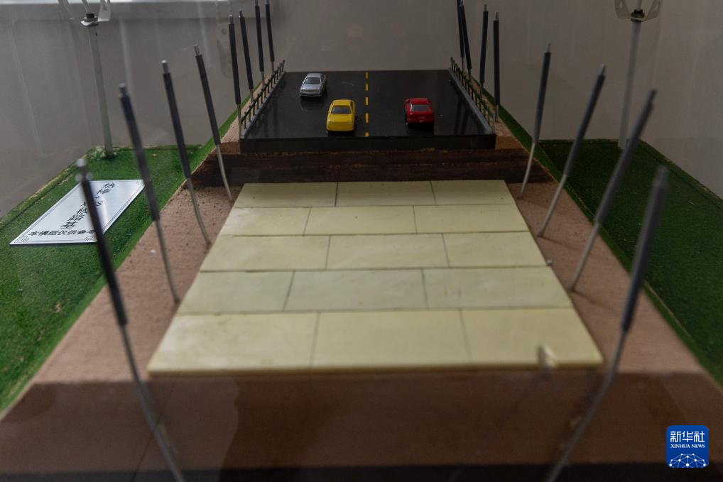 這是在中交第一公路勘察設計研究院有限公司格爾木觀測研究基地拍攝的“熱棒加XPS板路基”模型(12月3日攝)。新華社記者 姜帆 攝
